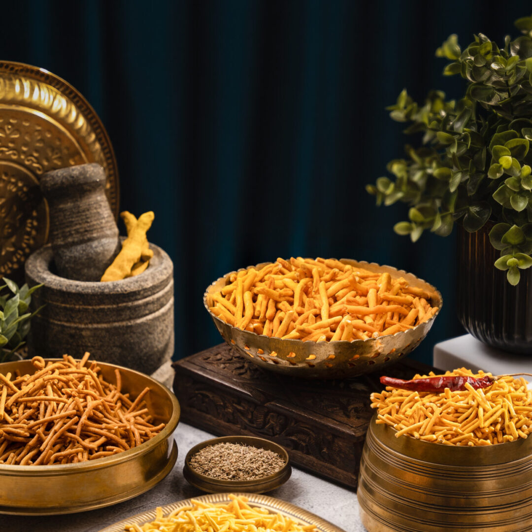 We have all sorts of yummy snacks to explore, from the classic crunch of sev to the spicy kick of real Khandeshi spices. Every bite is a celebration of the amazing flavors of Khandesh. From the hot and spicy Khandeshi sev to the lighter singhada sev, you’ll be savoring the taste of tradition with every delicious mouthful!